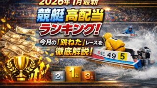競艇情報【2026年1月最新】競艇高配当ランキング!今月の「跳ねた」レースを徹底解説 2026年の幕開けとともに、ボートレース界では早くも波乱の展開が相次いでいます。1月の1ヶ月間に絞り、全24場の中で特に高い払戻金を叩き出したレースをランキング形式でご紹介します。今月、最も「万舟ファン」を熱狂させたのはどの競艇場だったので... 2026.01.29競艇の稼ぎかた競艇情報配当金