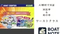 | 予想の根拠 | Reason 1: 圧倒的ノウハウ&蓄積された情報:プロ予想家、有名スポーツ新聞元記者など、業界最多の1000を超えるコネクションを持つ強いパイプを活用。Reason 2: 最新テクノロジー&専門機関との連携:「AI予測ツール」を導入し、機械工学、気象学、海洋力学等の専門機関と連携してリアルタイムで情報を解析。 |